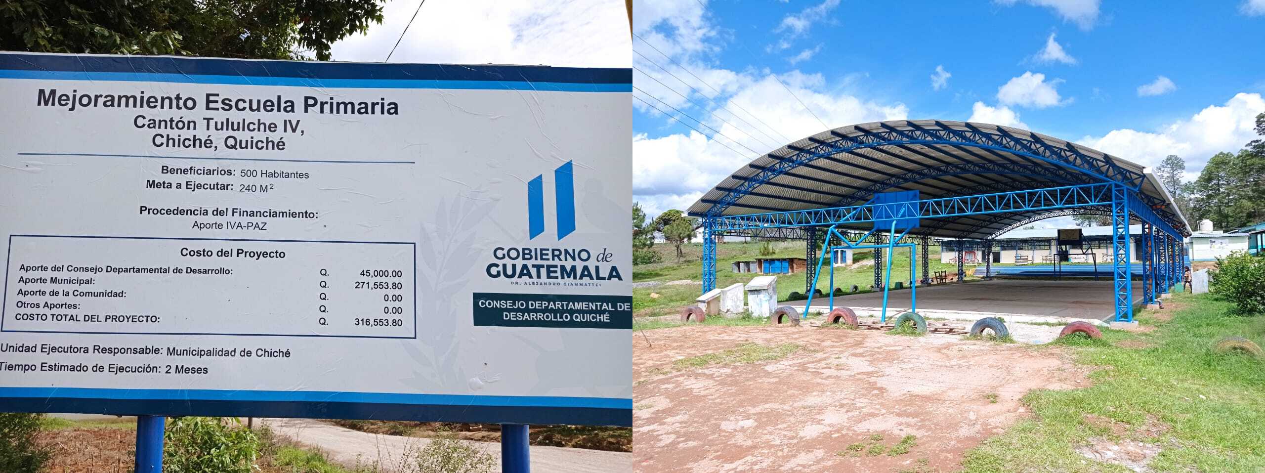 El Concejo Departamental De Desarrollo Suoervisa la Obra de MEJORAMIENTO ESCUELA PRIMARIA CANTON TULULCHE IV CHICHE,QUICHE, con un avance fisico del 90%